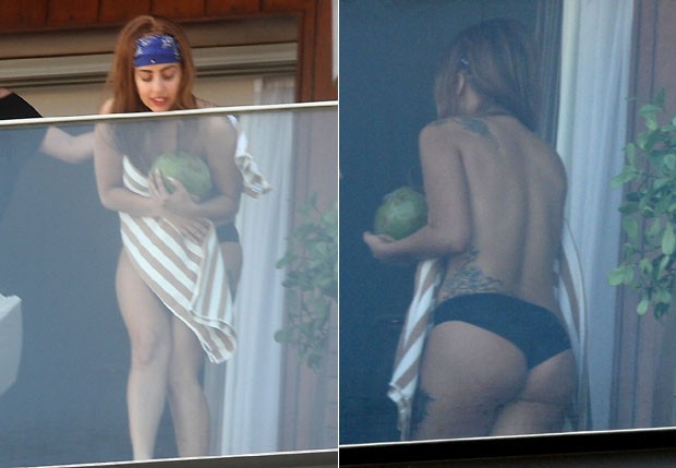 LADY GAGA CAUSA POLEMICA DEPOIS DE APARECER SO DE CALCINHA NA SACADA DO HOTEL NO RIO.